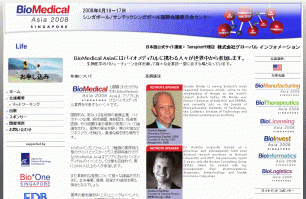 およそ1週間にわたって開催される「BioMedical Asia 2008(バイオメディカルアジア)」は、アジアにおけるバイオメディカル業界最大のイベントです。主要な企業、団体から高いレベルのスピーカー、出展者、参加者が1000人以上集まり、様々な問題について議論を行ないます。