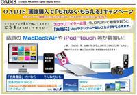 今回のキャンペーンは、『OADIS』の利便性をさらに多くの方にお伝えするために実施するもので、期間中の画像購入額に応じてMacBookAirやiPod(R) touch、デジタル一眼レフカメラOLYMPUS E-3など、クリエイターの方々に喜ばれる賞品を「もれなく」プレゼントいたします。