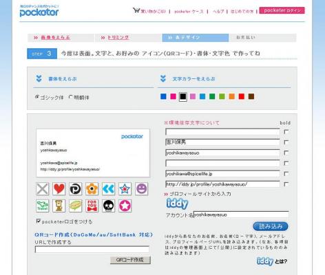 1.pocketer(ポケッター)サイトより、おもて面デザイン画面に進む。