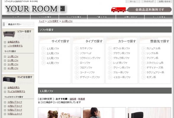 「YOUR ROOM」ではECショップならではの特徴を活かして、家具のショッピングをWEBでも楽しめるようにしております。