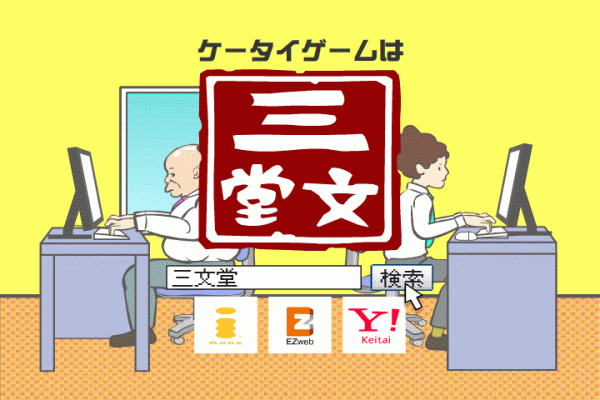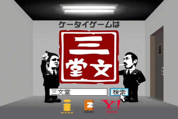 「三文堂」は3キャリアで展開し、ミニゲームFLASHと待ち受けFLASHを中心にしたFLASH総合サイトです。FLASHの特性を活かしたグラフィカルで動きのあるミニゲームと待ち受けコンテンツを用意しております。サイトの更新を頻繁に行った飽きの来ないサービスで人気を博し会員数もDoCoMoだけで40万人にご利用いただいております。