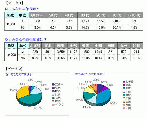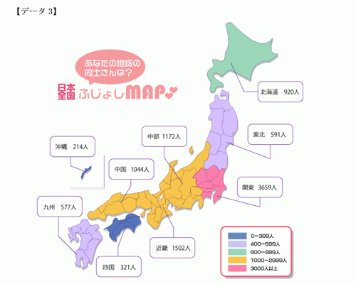 「腐女友の輪プロジェクト」は、日本中に「腐女子」がいったい何人居るのか調査することを目的としたプロジェクトです。サイト上に「腐女子カウンター」を設置することにより、ユーザーが自身の年代と在住地域を選択し1票を投じることで、1カウントが加算されます。年代別、地域別の調査結果は同ページ内で公開中です。【データ1~3参照】