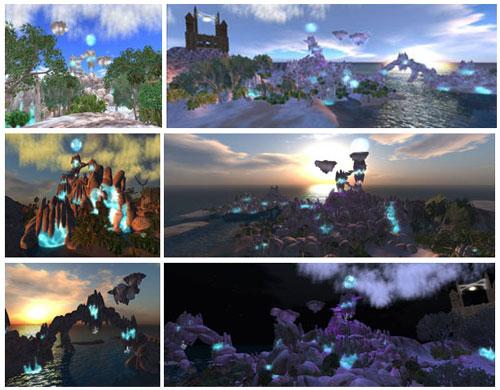 この度、未来創造都市[Blue Ravine]を運営する、株式会社WE -Wolf Evolution-では、女性をメインターゲットにしたコンセプトSIM、ファンタジーリゾート[Splash Lagoon]をオープン致しました。製作にあたっては、Wind Light準拠を基本にコンセプトおよびSIMを設計。 実際の製作においては、スカルプトプリムを活用した自然表現により、朝から夜にかけて"表情溢れる"景観を楽しむ事ができます。また、"仮想ならでは"として、空中にも住居エリアを用意し、夢のあるファンタジー空間を演出しております。土地レンタル料金は、一区画\1,200-。