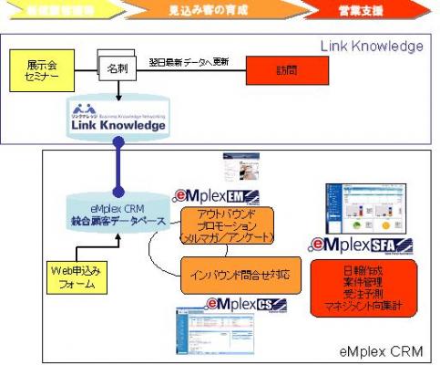 エンプレックス株式会社(本社:東京都中央区、代表取締役:沢登 秀明、以下 エンプレックス)と三三株式会社(本社:東京都新宿区、代表取締役社長:寺田 親弘、以下 三三)は、エンプレックスの統合型CRMパッケージソフトウェア『eMplex CRM』と三三の名刺データ化サービス『Link Knowledge』を連携、名刺獲得からマーケティング、営業、フォローアップまで、全プロセスにおける組織営業を最適化するソリューションを開発いたしました。
