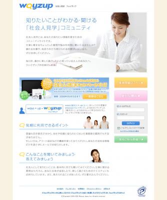 新サービス「社会人見学」では、Q&Aやコミュニティーの充実を通じて、「ウェイザップ」登録ユーザー間の情報交換機能を強化致します。さらに、毎日を頑張る社会人向けの情報ポータルとして、「プロがナビする社会人見学」、「みんなもできるプチチャレンジ」、「今日のQ&A」といった、「社会人に有益な専門家連載記事」、「社会人の等身大成功ストーリー」、「社会人の素朴な疑問にズバリ答える」などのコンテンツを展開して参ります。