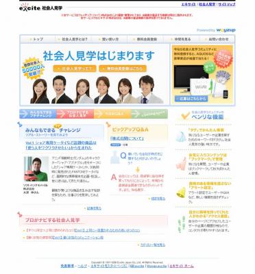エキサイト株式会社が運営するポータルサイト「エキサイト」のトップページに、ウェイザップ専用のカテゴリー、「社会人見学」を新設します。この結果、エキサイト登録会員および利用者は、「エキサイト」トップページのカテゴリーリンクから、「ウェイザップ」へ誘導されます。