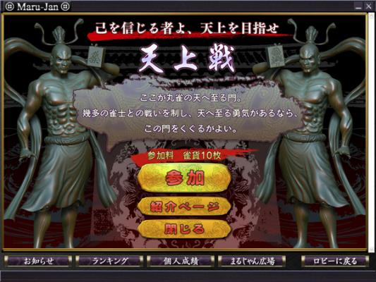 Maru-Janではオンライン麻雀の日を記念して、同日4月26日より、Maru-Jan最強決定トーナメントと言える「天上戦」を新たに実施する。