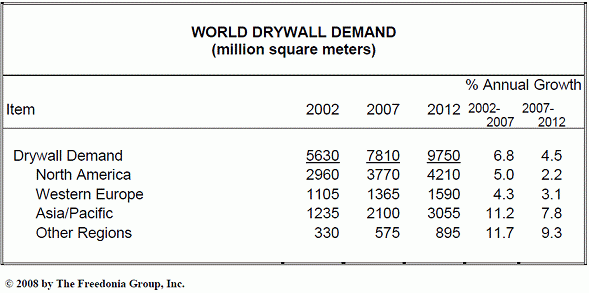 これらの動向については、米国、クリーブランドを拠点とする調査会社 The Freedonia Group, Inc. が発行した調査報告書 "World Drywall & Building Plasters" に掲載されています。