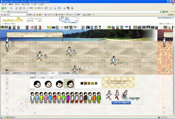 ->大会参加にあたって自分のキャラクターの分身であるアバターを作ることができます。 性別・髪型・髪の色・ウェアなどを自由に選択することでオリジナルキャラクターがつくれます。 ジョグノートカップスは、非ジョグノートユーザーでなくても閲覧可能となっております。 大会参加にはジョグノートへの登録が必要です。