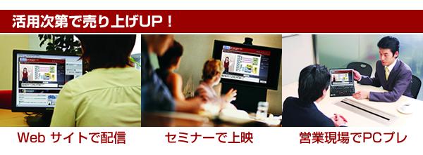 当コンテンツは活用次第でWeb配信以外に営業現場ツール、セミナーなどさまざまなシーンで使用が可能です。