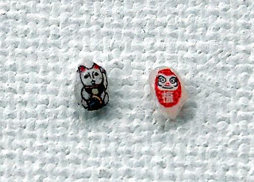 米粒に縁起物「ダルマ&招き猫」プリント2粒発表