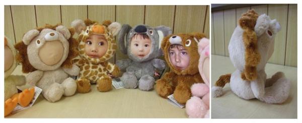 今までのプリ面ぐるみでは、「ちょっとお面部分が小さく、孫や愛犬の写真が見えにくかった」とか、「せっかくの顔写真なのだから、もっと目立つようにしたい」とか、「贈り物なので、もっと大きく迫力あるモノにしたい」など、さまざまな意見が寄せられていました。スタンドタイプでは、それらの声にこたえつつ、かつ顔写真を加工するお面の品質を落とすことのない最適な大きさを実現致しました。