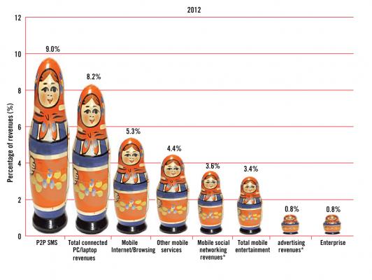 Informa Telecoms & Mediaの最高リサーチ責任者で同報告書の執筆者でもあるMark Newman氏によりますと、過去10年間、モバイル事業者は、音声サービスの収益低下が避けられないと考え、それを埋め合わせるために、音声以外の新たなサービスに対応する戦略やプラットフォーム、サービス内容の開発にまい進してきたといいます。しかし、この取り組みは困難を極めており、ショートメッセージングサービス(SMS)以外のデータサービスの収益は、これまでのところ期待を裏切る状況が続いています。