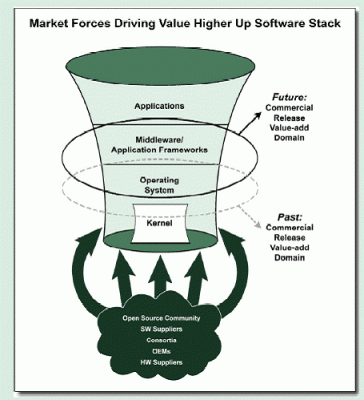 米国の調査会社Venture Development Corporation(VDC)社が最近発行した調査報告書では、組込みシステム製造業者とそのサプライヤーらは、強固な基礎ソリューションプラットフォームの可用性と開発環境を向上させる手段として、Linuxを利用した特定業界独自のオープンソース規格の開発を推進していると伝えています。
