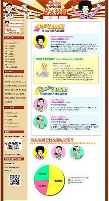 現在、英語ダメ社員は、携帯サイト版の運営を行っており、1日1問更新される今日のおもしろ英語の更新通知を会員のみなさまに毎日メールで配信しておりますが、メール配信後2時間以内に約80%の会員の方がサイトを訪問するなど、サイトの特徴である気軽さ、楽しさ、知的なヒマつぶしをご評価頂き、特に継続性という点でご好評頂いております。