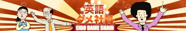 英語ダメ社員では、外資系企業に買収された「ゆるゆる商事」のダメ社員3人のキャラクター(親のコネで入社しまだまだ学生気分が残っている新入社員アフロ、毎日定時帰宅でイケメンにはめっぽう弱いこつぼねさん、仕事中にお茶をすする姿に哀愁漂う窓際係長)が登場し、この3人のキャラクターが上記の100人の回答データを元に作成された典型的な日本人英語で問題に答えていくコンセプトで作成されています。