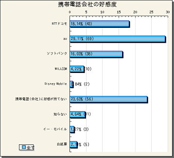 『携帯電話会社の好感度』の途中結果をお知らせします。