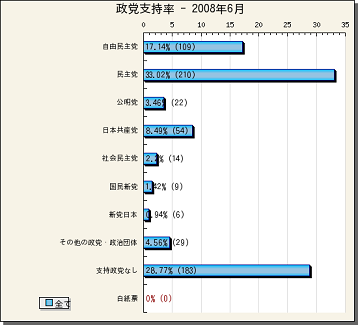 『政党支持率 - 2008年6月』の途中結果をお知らせします。