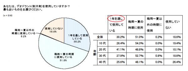 気象庁によると沖縄では例年より早い梅雨明けを迎え、汗のニオイの気になる季節になって参りました。そこで当社では、汗を抑えるデオドラントの使用実態や、汗の実態を調査しました。