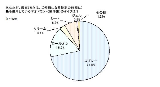 最も使用しているデオドラントの種類について聞きました。