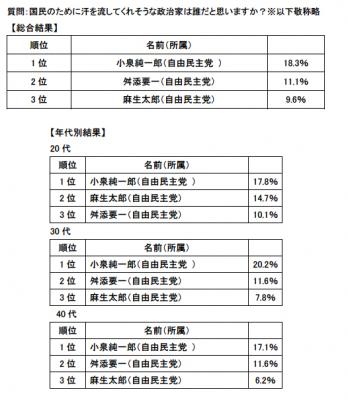 ★国民のために汗を流してくれそうな政治家トップ3は、小泉氏、舛添氏、麻生氏。