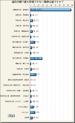 『福田内閣で最も評価できない閣僚は誰ですか?』の途中結果をお知らせします。