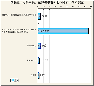 ・支持する。拉致被害者を北へ送還すべきだ。 14票(4.67%)