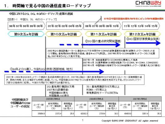 株式会社チャイナウェイは、中国の通信産業ロードマップ予測を 発表しました。
