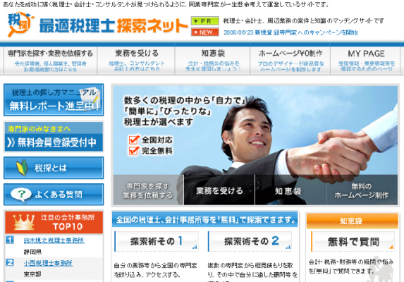 最適税理士探索ネットは、税理士・会計士・及びその周辺業務の「案件」と「知識」のマッチングサイトです。事業家をはじめとするユーザーの方々が、自分にぴったりな税理士・会計士を「自力」で「簡単」に見つけることができるように、公認会計士が考え、構築し、運営しております。同業専門家としての目線、及び、ユーザーとしての目線を元に「真にユーザーにとって良い」税理士の選び方を追求し、作り上げたサイトです。