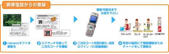 ・「nanacoギフト」のIDを二次元コードでも表示し、二次元コード対応携帯電話を利用することで、「nanacoギフト」を受取ったお客様自身による登録サイトへのアクセスと「nanacoギフト」ID入力の手間が省けます。