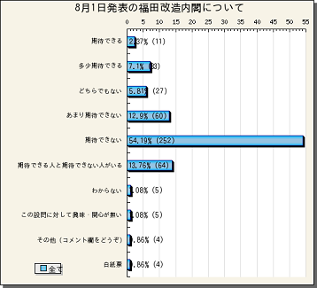 『8月1日発表の福田改造内閣について』の途中結果をお知らせします。