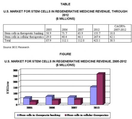 細胞治療セグメントにおいては、さらに急速な成長が期待されており、その市場価値は2007年に4,610万ドル、2012年には2億6,740万ドル規模に拡大すると見込まれています。