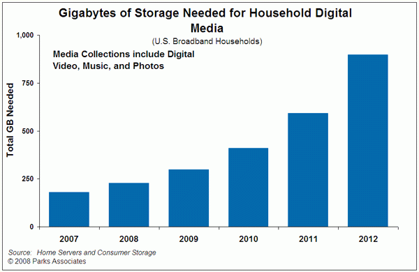 米国の市場調査会社Parks Associatesが発行した報告書「Home Servers and Consumer Storage: Analysis and Forecasts」によると、デジタルコンテンツライブラリの急速な成長から、世界のNAS(ネットワーク接続ストレージ)デバイスの出荷は2012年までに1,300万ユニットに達すると予測されています。