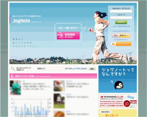 【JogNote(ジョグノート)】とは、 ジョギング愛好者の方に特化したソーシャルネットワーキングサービス。学生でも社会人でも年齢を問わず仲間を作り、励ましあいながらジョギングを楽しめる場を提供します。友だちからの招待がなくても登録できます。利用はすべて無料です。会員数は42,000人を超えています。(2008年8月18日現在)