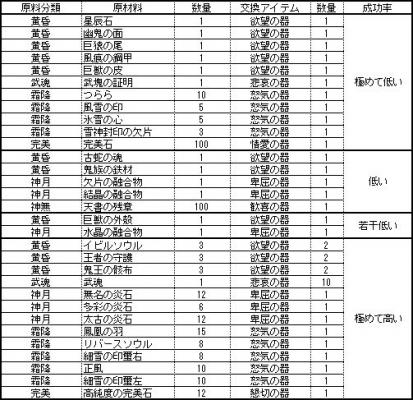 ・情愛の魂 99個 ・懇切の魂 99個 ・神器(作成する装備のもの)