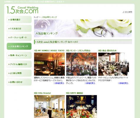 「1.5次会.com」( http://www.ittengo.com )のサービスに「人気会場ランキング」機能を追加しました。