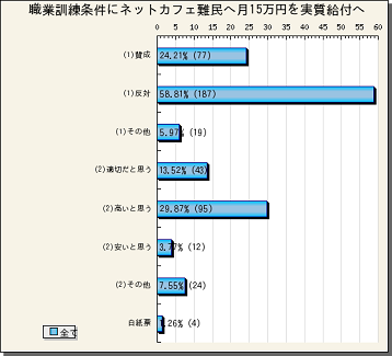 『職業訓練条件にネットカフェ難民へ月15万円を実質給付へ』の途中結果をお知らせします。
