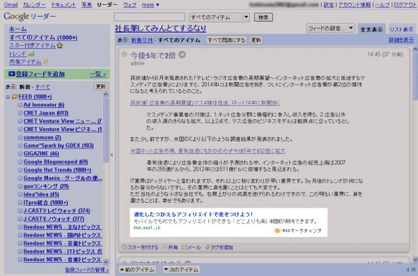■広告内容について ユーザーはRSSフィード内に自由に広告を掲載することが出来ます。広告は個別にアフィリエイトプログラム提供会社と契約をし自分のブログにあった広告を掲載することが可能です。また現在アフィリエイトプログラム提供会社と、RSSフィードへの広告掲載許可の提携交渉をすすめております。