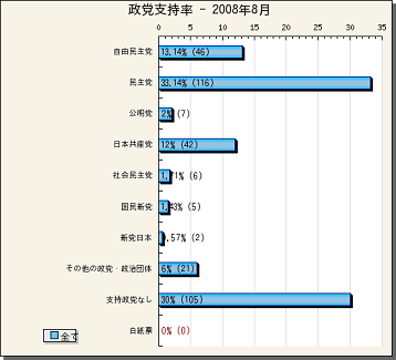 『政党支持率 - 2008年8月』の結果をお知らせします。
