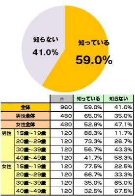しかし、性別ごとでの認知率については男性全体で65.0%、女性全体で52.9%となり、男女での認知の違いがある。