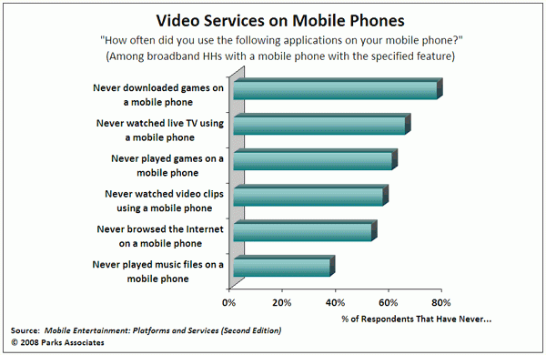 米国の市場調査会社Parks Associates が発行した報告書「Mobile TV: Analysis & Forecast (Second Edition)」によると、米国における世帯の3分の1近くがビデオ対応の携帯電話を所有しているにもかかわらず、オペレーターはモバイルビデオサービスの視聴者を獲得することに苦慮しています。