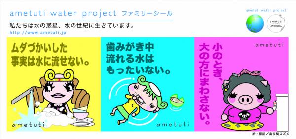 その一環として、誰でもすぐに参加できる<ametuti family project>を実施、ご家庭内での水の無駄使いを注意するametuti節水シール第一弾を配布(9月から配布)、