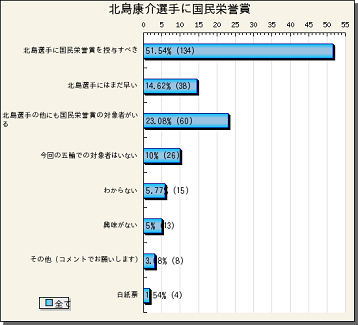 ・北島選手に国民栄誉賞を授与すべき 134票(51.54%)