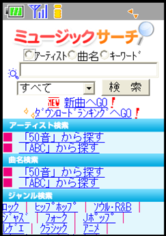 「ミュージックサーチ」は複数の人気着うた®、着うたフル®、ダウンロードサイトの