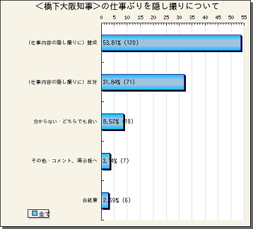 『<橋下大阪知事>の仕事ぶりを隠し撮りについて』の途中結果をお知らせします。
