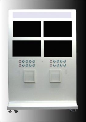本体は、スティール筐体、26インチ液晶モニター4台、スピーカー2基、ステレオアンプ1基、電源1基、ボタンスイッチ20個より構成されます。前面にパンフレットなどのセットできる小冊子入れを装備。上部のビルボードバックには、CO2削減を配慮した省エネ・長寿命のCCFランプ(冷陰極管蛍光灯)を設置しています。