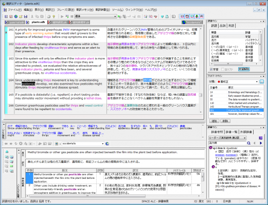 ●さらに進化した統合翻訳作業環境、スタジオ・インターフェースを採用した「翻訳エディタ」(スクリーンショット上)