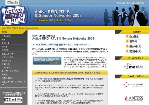 会議:「Active RFID, RTLS & Sensor Networks 2008」