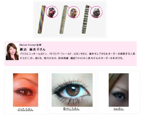 専用のマスカラデコケースが当たったのは下記10名の皆さんでした。おめでとうございます。「目」を印象的にする為のマスカラやエクステ、つけまつげを駆使し可愛く誘惑EYESを作っている日々の努力さえ感じます。やっぱり女の子にとって「目」というのは大事なんですね!!デコケースはキーホルダーつきなのでバックにつけても可愛いですよ★