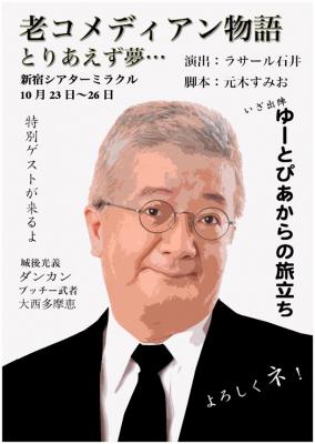 御蔭様で、この度舞台「老コメディアン とりあえず夢」の公演を行う運びとなりました。
